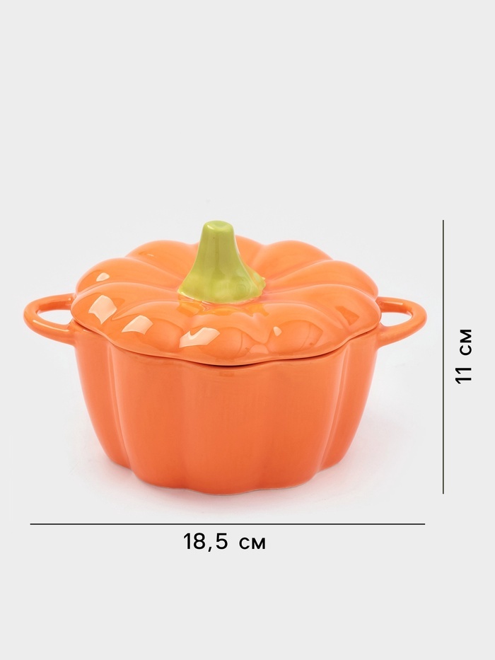 Горшочек для запекания «Тыква», 500 мл, 18.5?14?11 см, посуда для Хэллоуина, жаропрочная керамика, оранжевыйВопросы по товару