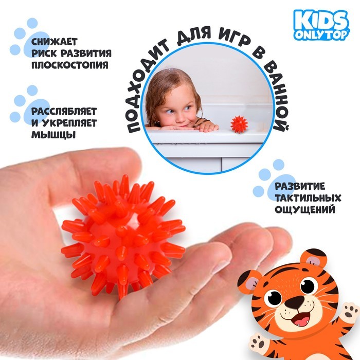 Мячики с рельефной массажной поверхностью способствуют развитию мелкой моторики и тактильных ощущений. Давление на фактурную поверхность мячиков стимулирует и благоприятно воздействует на нервные окон... Показать описаниечания, ответственные за большинство процессов в организме. Шарики имеют яркие цвета, которые способствуют развитию зрения, а пищалка внутри развивает слуховое восприятие. Мячики выполнены из приятного на ощупь материала, и малышам очень удобно держать их в руках. ВАРИАНТЫ ИГР: 1. Упражнения на изучение цветов. 2. Игры на сходства и различия. 3. Упражнения на развитие мелкой моторики и тактильных способностей. 4. Игры на память. 5. Игры в воде. Мячики используются в работе преподавателями, логопедами.