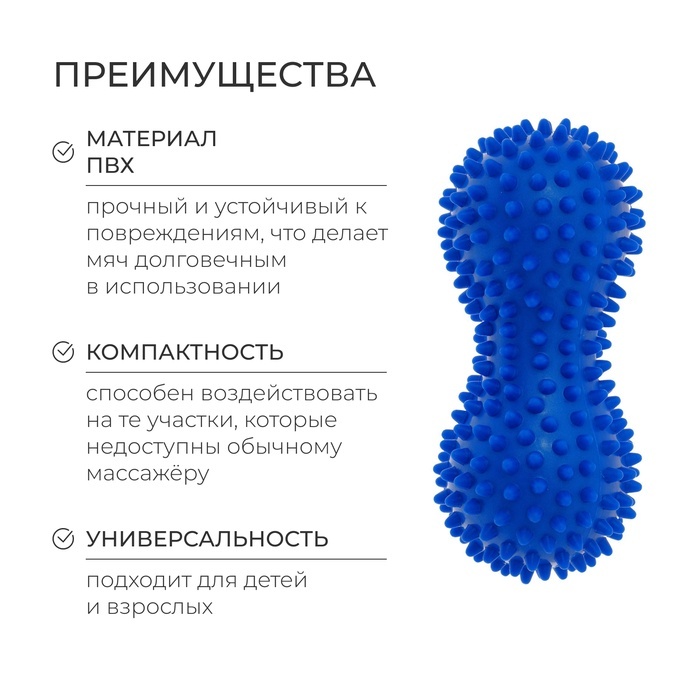 Массажёр подходит для детей и взрослых. Предназначен для физического воздействия на биологически-активные точки на теле человека для профилактики и лечения ряда заболеваний. С целью общего оздоровлени... Показать описаниея организма, укрепления иммунитета, расслабления, снятия физического и психоэмоционального перенапряжения. Массажёр развивает моторику рук ребёнка, способствует улучшению памяти, внимания и развитию речи. Диаметр: 4,5 см.