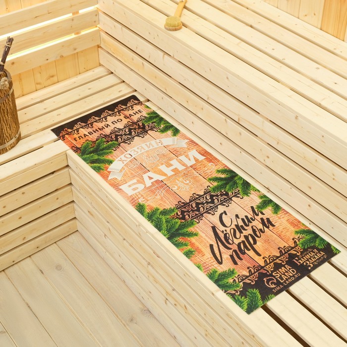 Коврик - лежак для бани и сауны с принтом «Хозяин Бани», 150?50 см, полиэфир, «Банная забава» Вопросы по товару