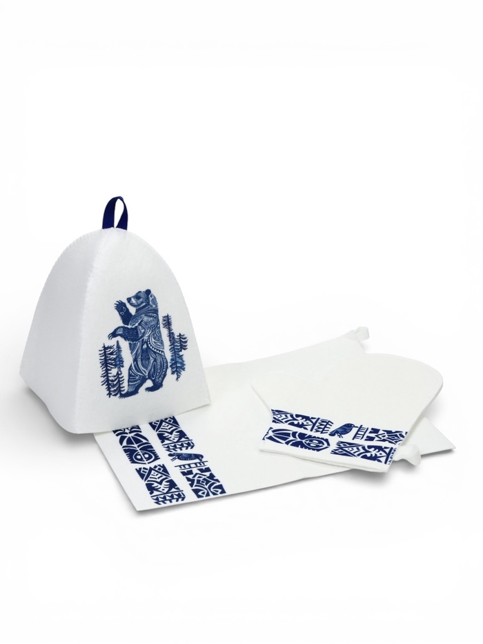 Набор для бани в пакете «Медведь» (шапка, коврик, рукавица)Набор для бани в пакете «Медведь» (шапка, коврик, рукавица)Набор для бани в пакете «Медведь» (шапка, коврик, рукавица)