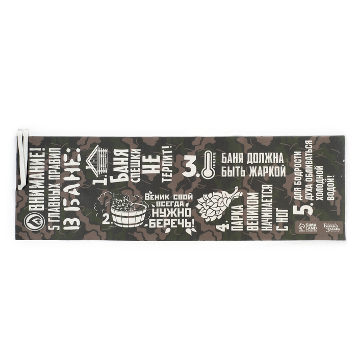 Коврик - лежак для бани и сауны с принтом «5 главных правил в бане», 150?50 см, полиэфир, «Банная забава» Вопросы по товару
