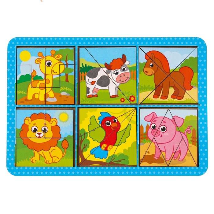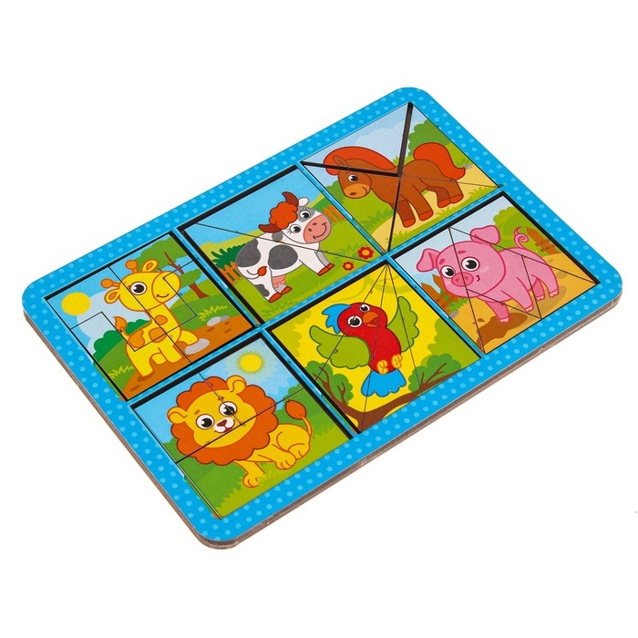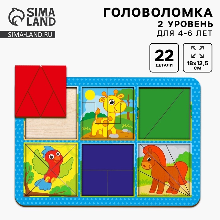 Головоломки - это отличный способ развития логики и мелкой моторики! Задача малыша - собрать квадраты из цветных элементов: треугольников, прямоугольников и других фигур в рамку. Сначала можно собират... Показать описаниеь изображения с животными,а затем однотонные картинки. В процессе ребёнок знакомится с новыми формами и цветами, учится соотносить части и целое. Постепенное усложнение заданий позволяет малышу самостоятельно осваивать материал и не прибегать к помощи родителей. Дополнительно Квадраты 2 в 1. С одной стороны у квадратов только цвет, а с другой стороны картинка.