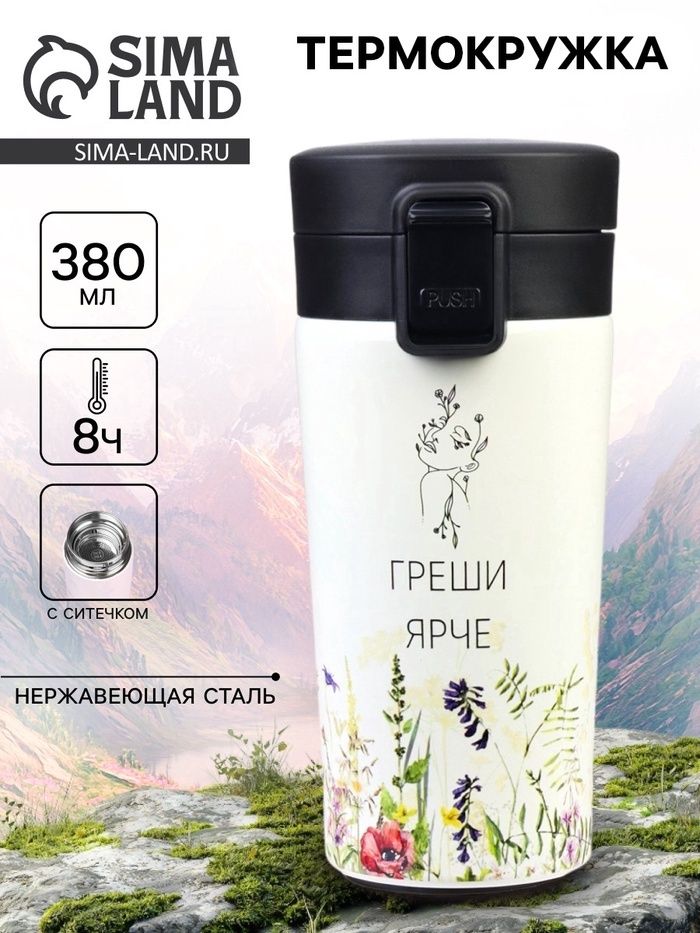 Термокружка «Греши ярче», 380 мл, сохраняет тепло 8 ч, с ситечкомВопросы по товару
