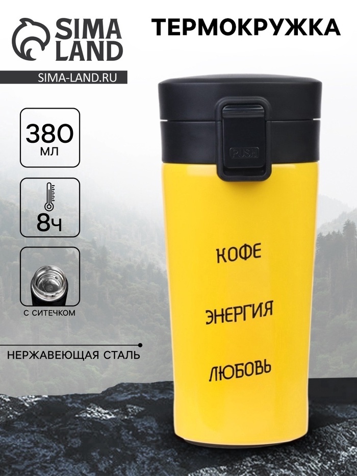 Термокружка «Кофе, энергия, любовь», 380 мл, сохраняет тепло 8 ч, с ситечкомВопросы по товару