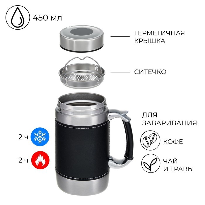 Термокружка TAKE IT EASY «Великан.Модерн», 450 мл, 16?8 см, сохраняет тепло 2 ч, сито, нержавеющая стальВопросы по товару