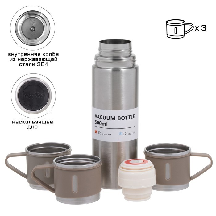 Набор «Мастер К», термос 500 мл и 3 кружки 160 мл, сохраняет тепло 12 ч, нержавеющая сталь, бежевыйВопросы по товару