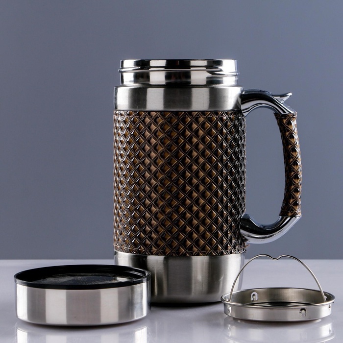 Термокружка - это отличное решение на каждый день для любителей чая и кофе. Термокружка подходит для использования в разных обстоятельствах: в офисе, идеальна для походов, длительных прогулок с ребенк... Показать описаниеом или мини путешествий на природу. Многие используют её как инвентарь для отдыха, походов и туризма. Термокружку можно взять с собой на пикник, а также её можно взять с собой в поездки на дачу или на работу, чтобы напитки не остывали по дороге. Особенности: * Термокружка выполнена из нержавеющей стали, поэтому устойчива к механическим повреждениям. * Сохраняет тепло до 6 часов. * Объём - 500 мл. Наполните уютом ваши прогулки или поездки в машине. Термокружка станет полезным и универсальным подарком для на 8 Марта, Новый год и на любом другой праздник.