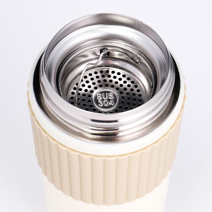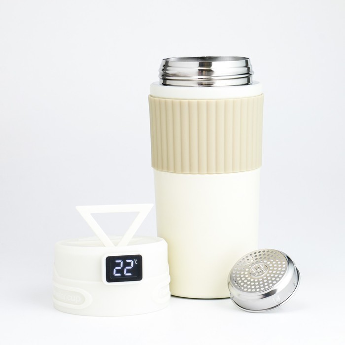 Термокружка TAKE IT EASY New design, 400 мл, сохраняет тепло 12 ч, термометр, сито, бежевыйВопросы по товару