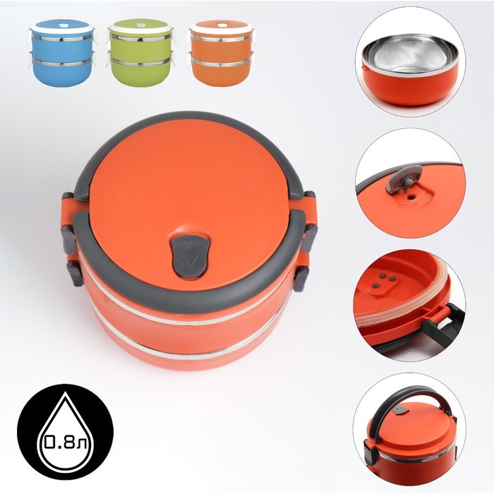 Ланч-бокс - это ручной контейнер для пищевых продуктов, используемый для транспортировки еды. Этот стильный и функциональный аксессуар станет незаменимым помощником в повседневной жизни. Среди разнооб... Показать описаниеразия термопосуды ланч-бокс из металлической основы внутри - одна из популярных и универсальных моделей. Ланч-бокс из нержавеющей стали в пластиковом корпусе не содержит вредных веществ и безопасен для здоровья. Благодаря плотно закрывающейся крышке и специальным зажимам, контейнер надежно сохраняет свежесть и аромат ваших блюд, предотвращая протекание и рассыпание. Легкий и компактный, позволяет удобно разместить ланч-бокс в сумке или рюкзаке, не занимая много места. Отлично подходит для любых типов пищи, включая супы, вторые блюда, салаты и десерты. Обеспечивает надёжное сохранение температуры пищи в течение двух часов. Это позволит вам наслаждаться горячими блюдами даже спустя некоторое время после их приготовления, сохраняя их вкусовые качества и полезные свойства. Отличительной особенностью этого ланч-бокса является клапан на внутренней стороне крышки, который служит для выпуска пара, для более легкого открытия контейнера после нахождения в нем горячей пищи. Сфера применения контейнеров в быту разнообразна, их приспосабливают для различных целей, например, для хранения продуктов в холодильнике или организации порядка на кухне. Многоразовый вместительный контейнер с крышкой можно брать с собой на работу и на пикник, на дачу и в школу. Благодаря своей функциональности, удобству использования и стильному дизайну, он станет вашим верным спутником в мире здорового образа жизни и правильного питания. Отличный подарок не только для себя, но и для близких, которые ценят комфорт и практичность в повседневной жизни. Забудьте о неудобных одноразовых упаковках, выберите долговечный и многофункциональный ланч бокс. Балуйте себя и своих близких домашними деликатесами, а термопосуда поможет дольше сохранить вкус и качество продуктов. Перед первым использованием необходимо тщательно вымыть в теплой воде и вытереть насухо. Комплектация Крышка - 1 шт. Контейнер - 2 шт. Дополнительно * Объем верхнего отсека 200 мл * Объем среднего отсека 200 мл * Объем нижнего отсека 450 мл *указан литраж полезного объема