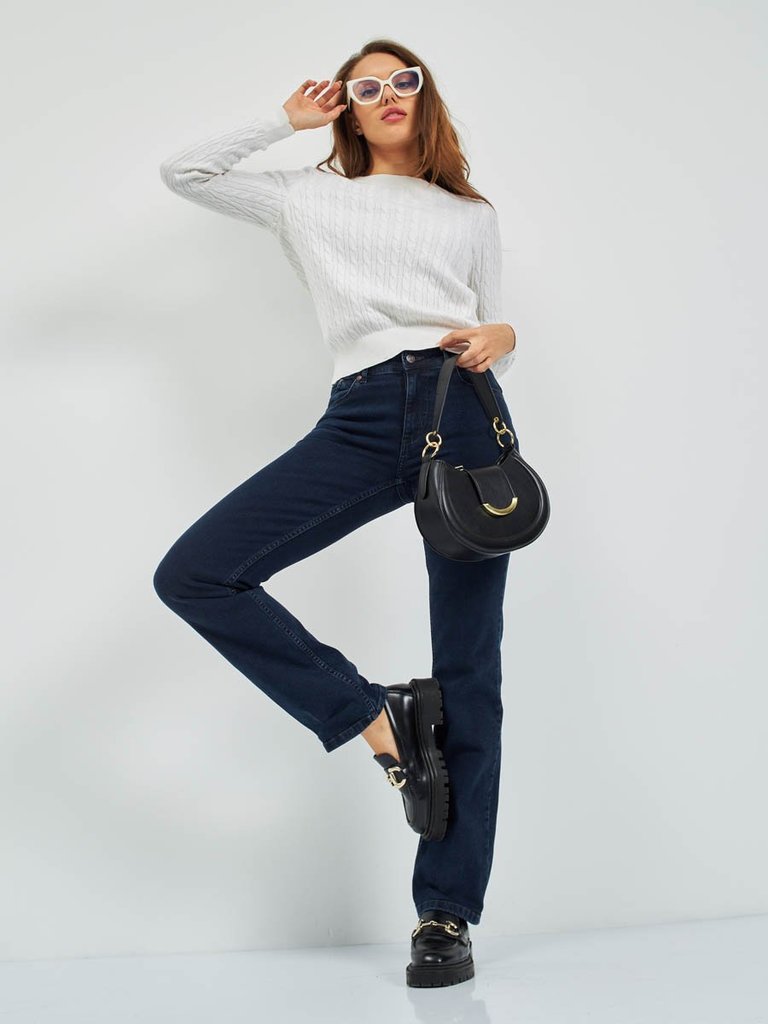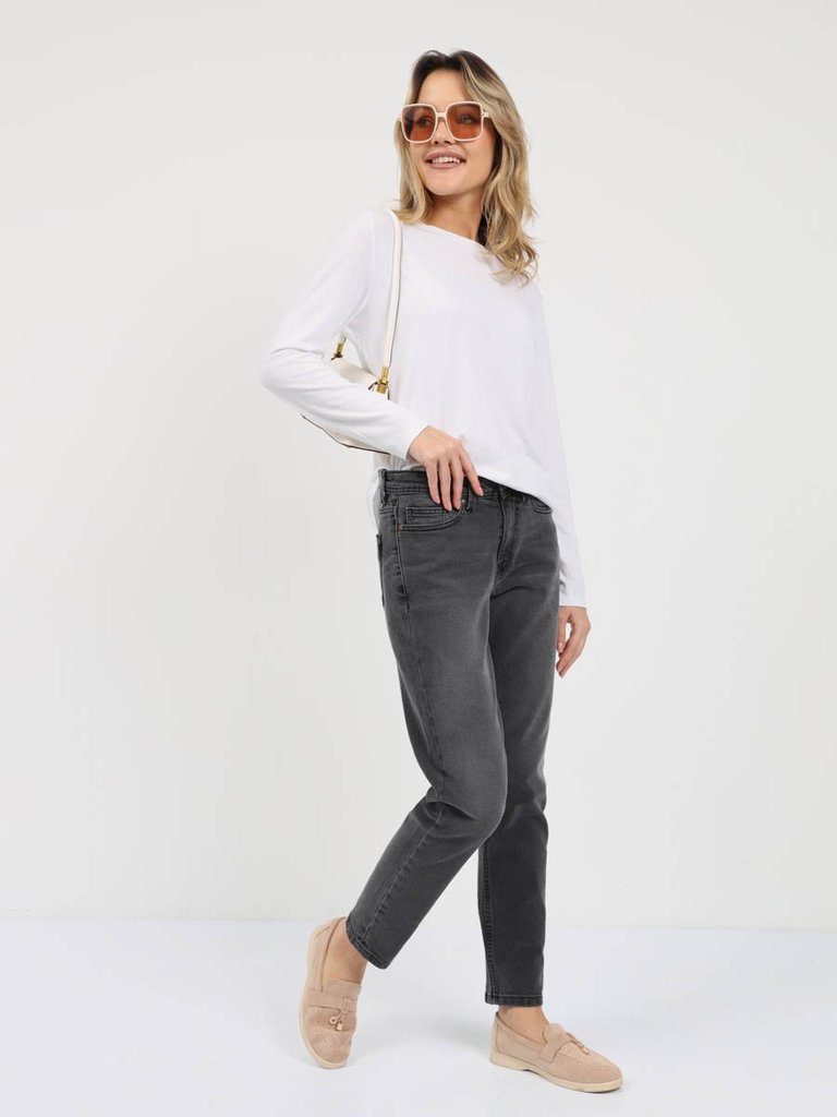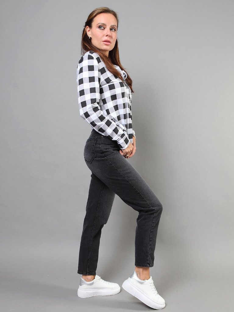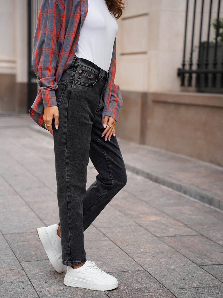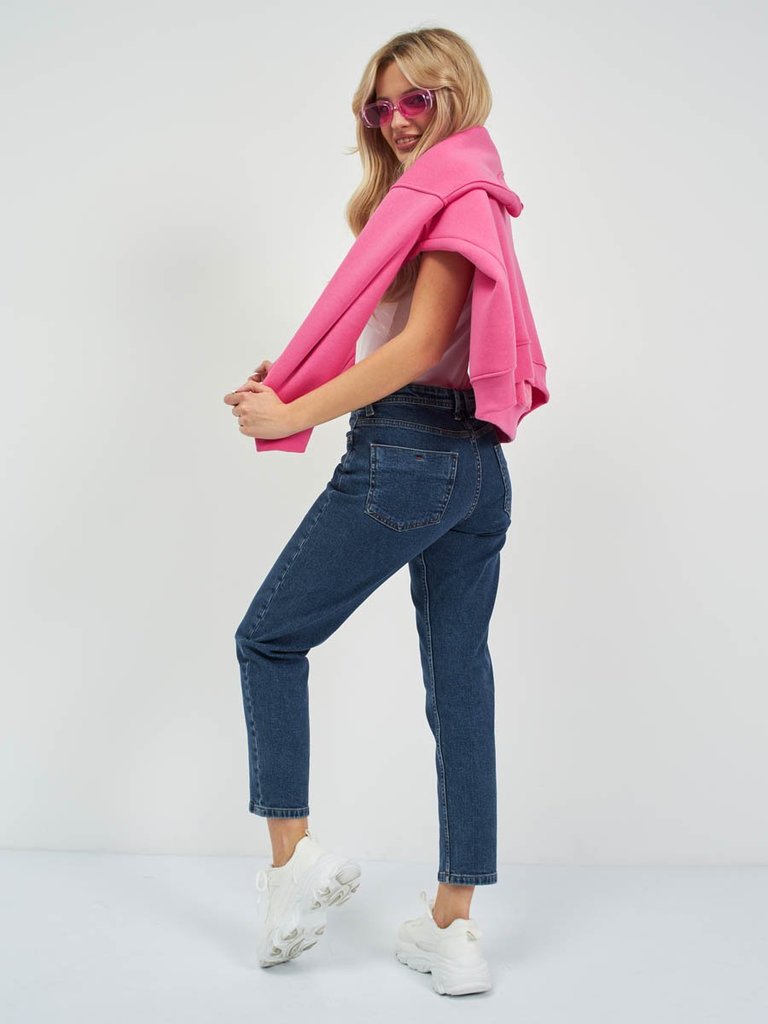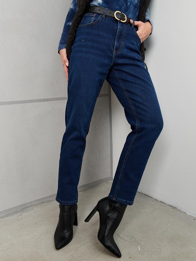 Цвет: стирка темная Состав: 73%хлопок, 22%полиэстер, 3%вискоза, 2%эластан/100%полиэстер Материал: Black denim M0075T-9-S str. Вес материала: 12 Фит: Mom fit Талия спереди: высокая Талия сзади: высокая... Показать описание Ширина колена: 20,5см Ширина низа: 16см ID: 253029 Описание Почувствуйте уют и стиль 90-х! Эти джинсы - идеальное решение для холодного сезона. Модель Mom Fit с высокой талией подчеркивает фигуру, а мягкая флисовая подкладка дарит невероятное ощущение тепла и комфорта каждый день. Свободные в бедрах и плавно зауженные к низу, они создают современный силуэт, который идет практически всем. Благодаря специальной технологии к джинсовой ткани с эффектом стрейч прикреплена флисовая подкладка. Флис - это синтетический материал, известный своими превосходными теплоизоляционными свойствами. Он создает множество микроскопических воздушных карманов, которые удерживают тепло близко к телу, но при этом материал "дышит". Это делает джинсы гораздо теплее обычных, но не такими громоздкими, как утепленные зимние штаны. Джинсы выполнены из качественной слабоэластичной ткани Denim Comfort Stretch, которая не сковывает движений и хорошо сохраняет форму. Классическая пятикарманная модель с застежкой на молнию и строгая темная стирка - завершают аутентичный образ. Идеальный выбор для женщин, которые ценят комфорт, не хотят мерзнуть зимой и следят за модными трендами. Они подойдут для повседневной носки, прогулок, встреч с друзьями и создания модных образов в стиле ретро. Рекомендации по уходу * * * * * Стирать в стиральной машине при температуре 30° Не использовать отбеливатель Ручная стирка при температуре 30° Гладить при минимальной температуре Химчистка недопустима