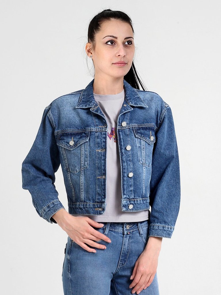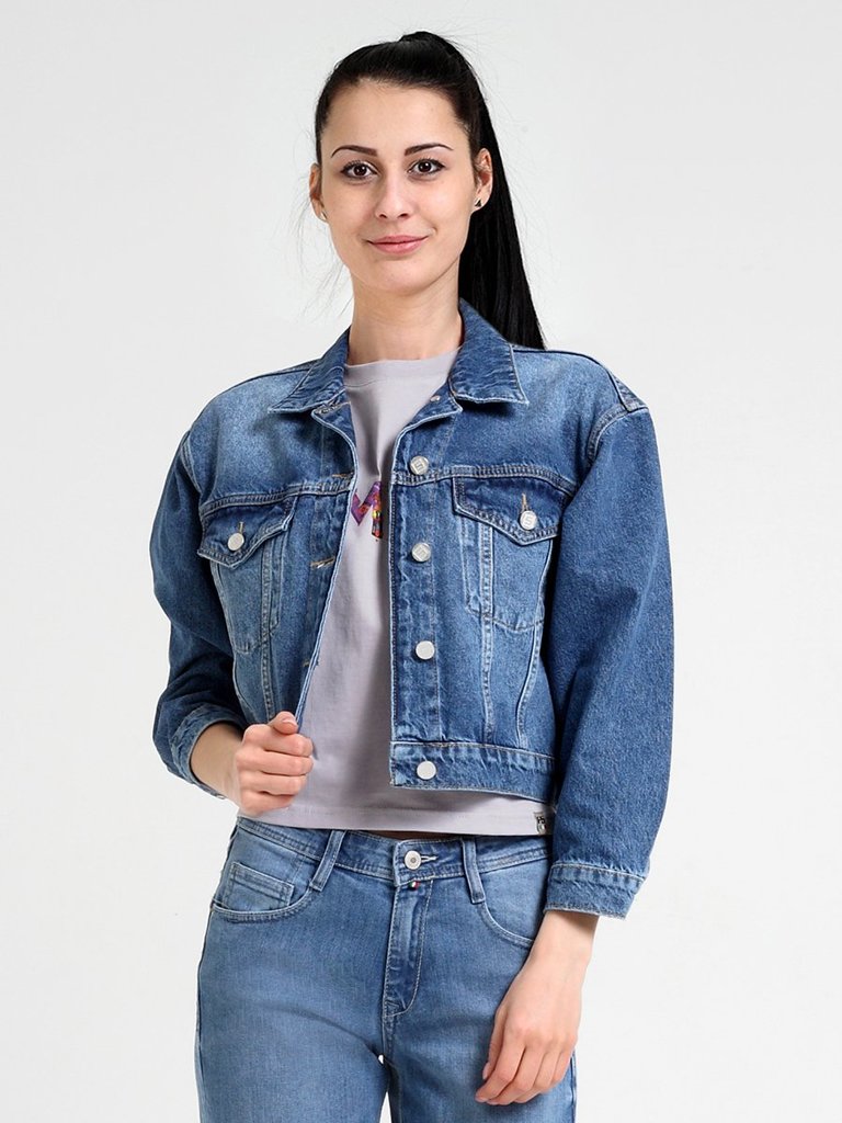 Цвет: стирка средняя Состав: 100%Хлопок Материал: Blue denim Фит: Regular fit ID: 107015 Описание Классическая универсальная укороченная женская джинсовая куртка. Прямой силуэт, пройма и рукава обесп... Показать описаниеечивают комфорт и не сковывают движения, по низу рукавов манжеты, застегивающиеся на пуговицу; стандартный воротник; на груди карманы с клапаном, также застегивающимся на пуговицу; на поясе по бокам куртки хлястик и две пуговицы, которые позволяют регулировать длину обхвата по поясу. Выполнена из качественной ткани denim 100% хлопок. Средняя стирка с потертостями спереди, сзади и рукавах.