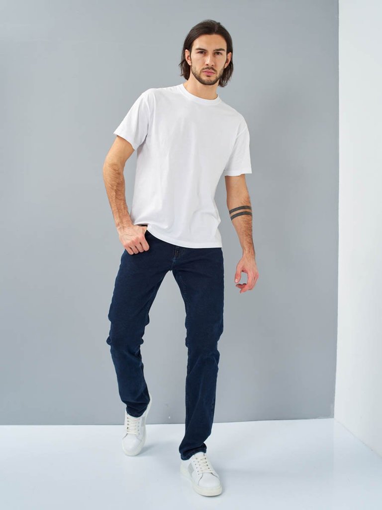 Цвет: синий Состав: 98%Хлопок, 2%Эластан Материал: Gabardine 0945 str. Вес материала: 370 Фит: Regular fit Талия спереди: высокая Талия сзади: высокая Ширина колена: 22см Ширина низа: 21см ID: 234500 ... Показать описаниеОписание Мужские брюки в джинсовом стиле с пятью карманами. Посадка Regular fit (полуоблегающие по бедру), немного заужены к низу, высокая талия. Застежка на молнии. Выполнены из слабоэластичной мягкой ткани gabardine stretch с небольшим peach (персиковым) эффектом по лицевой поверхности ткани. Крашение Garment dayed , т.е. покрашены в готовом виде после пошива.