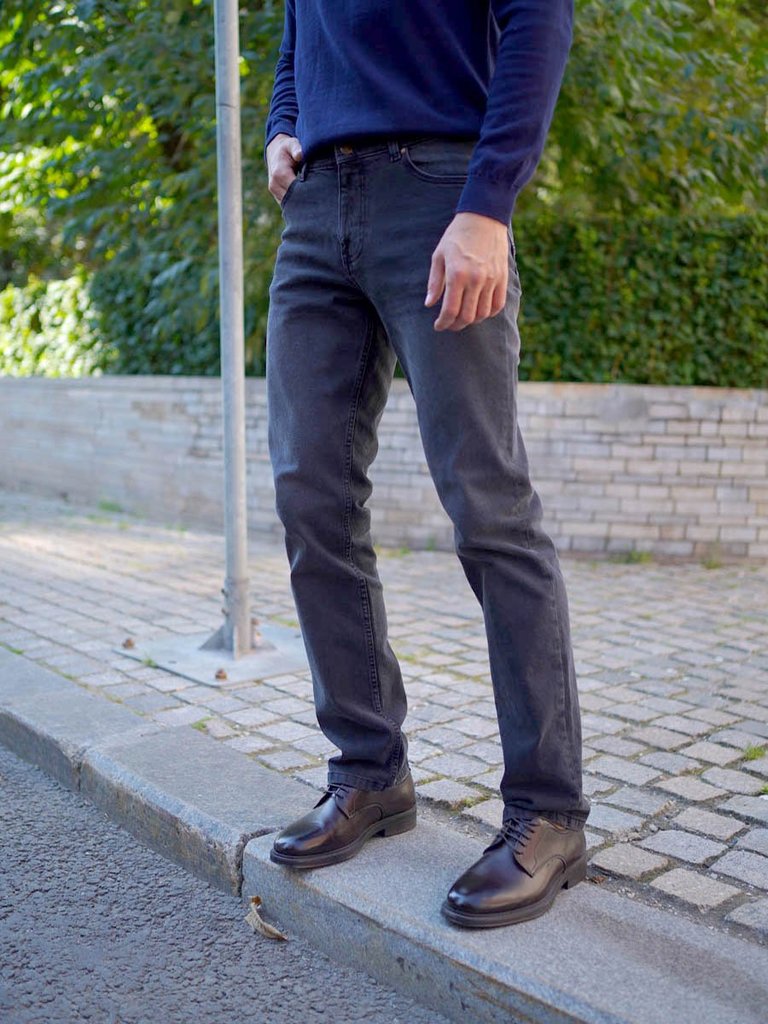 Цвет: стирка темная Состав: 98%Хлопок, 2%Эластан Материал: Blue/Black denim 010 str. Вес материала: 12.7 Фит: Regular fit Талия спереди: высокая Талия сзади: высокая Ширина колена: 21см Ширина низа: 1... Показать описание9,5см ID: 233521 Описание Мужские классические джинсы с пятью карманами. Посадка Regular fit (полуоблегающие по бедру), высокая талия. Застежка на молнии. Зауженные к низу. Выполнены из слабоэластичной ткани denim comfort stretch, цвет ткани Black/Black (лицевая и изнаночная стороны ткани черные). Темная стирка со слабовыраженными потёртостями и "усами" спереди и потёртостями сзади. Рекомендации по уходу * * * * * Стирать в стиральной машине при температуре 30° Не использовать отбеливатель Ручная стирка при температуре 30° Гладить при минимальной температуре Химчистка недопустима