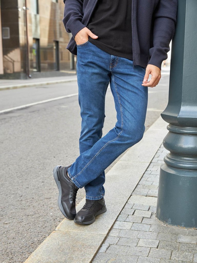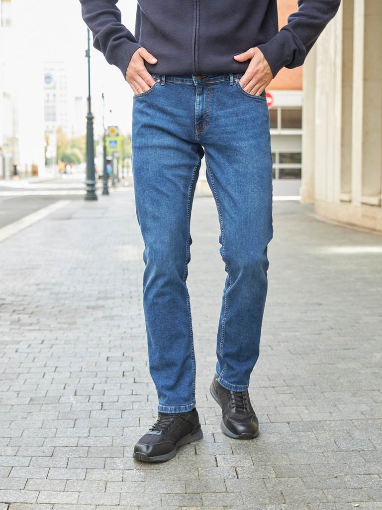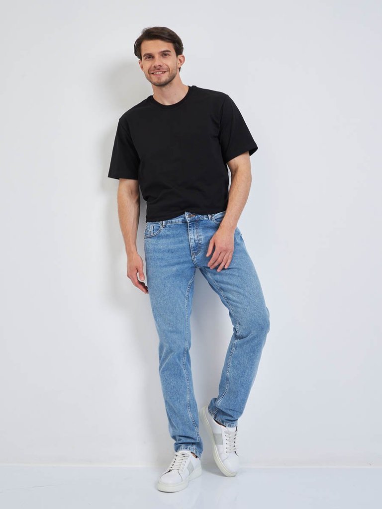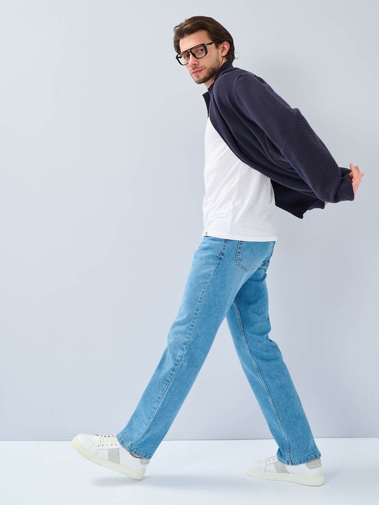 Цвет: стирка средняя Состав: 99%Хлопок, 1%Эластан Материал: Blue denim 007 str. Вес материала: 12.1 Фит: Regular fit Талия спереди: средняя Талия сзади: средняя Ширина колена: 22см Ширина низа: 21см I... Показать описаниеD: 143518 Описание Мужские классические джинсы с пятью карманами. Посадка Regular fit (полуоблегающие по бедру), средняя высота талии. Застежка на молнии. Немного зауженные к низу. Выполнены из слабоэластичной ткани denim comfort stretch. Средняя стирка с потёртостями и "усами" спереди и потёртостями сзади. Рекомендации по уходу * * * * * Стирать в стиральной машине при температуре 30° Не использовать отбеливатель Ручная стирка при температуре 30° Гладить при минимальной температуре Химчистка недопустима