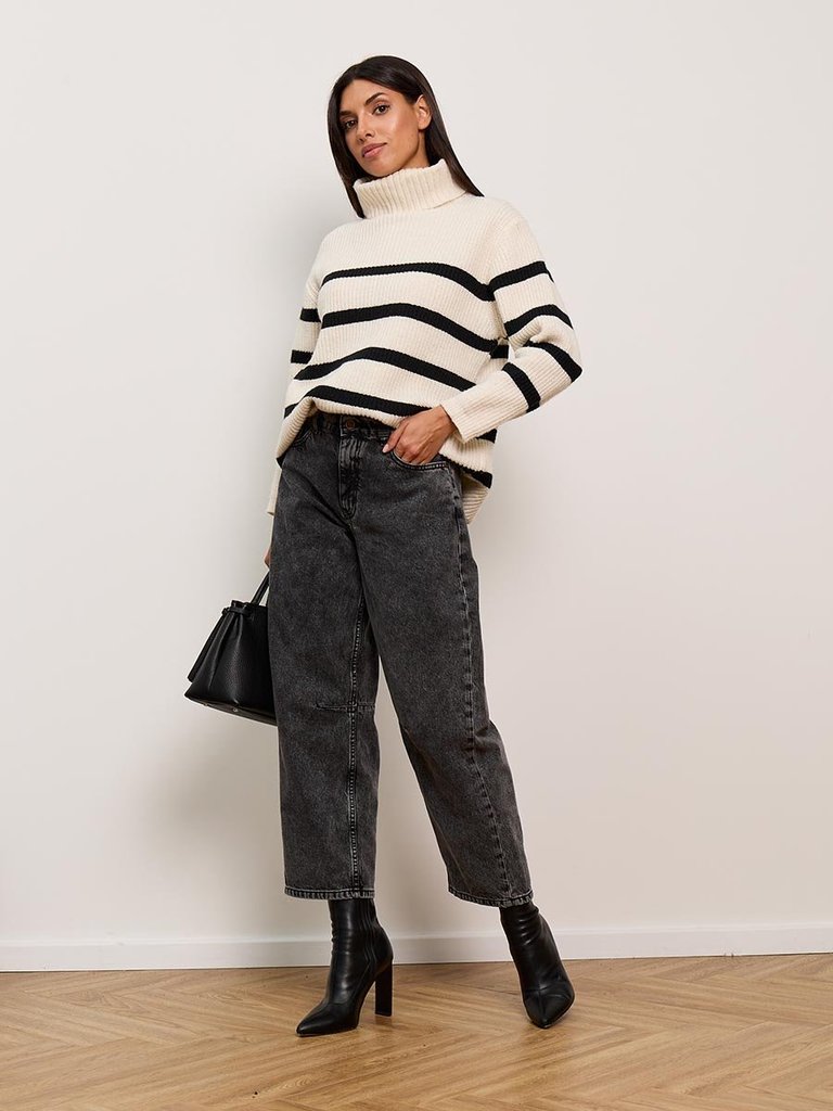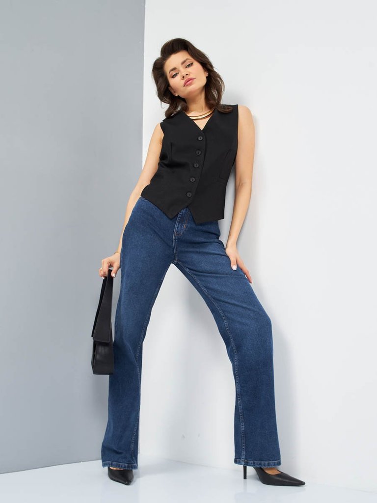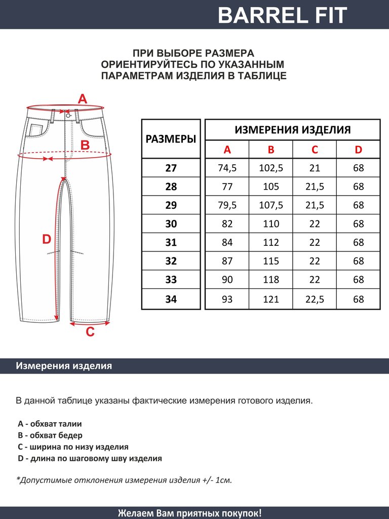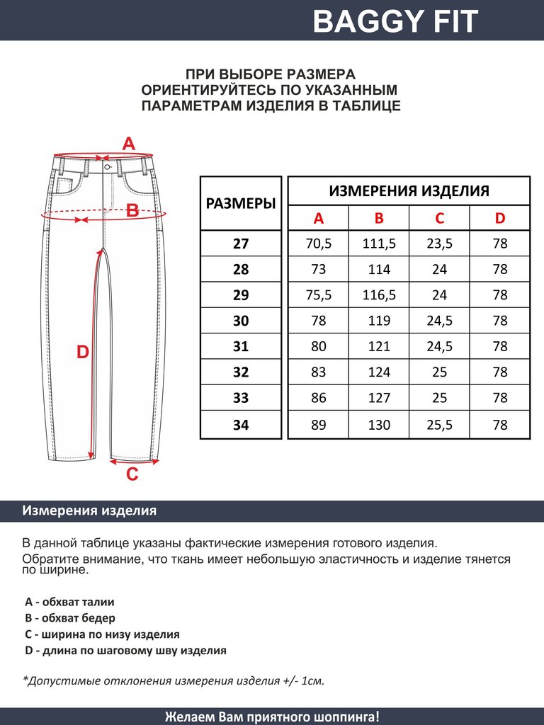 Цвет: стирка темная Состав: 99%Хлопок, 1%Эластан Материал: Black denim 006 str. Вес материала: 12.7 Фит: Baggy fit Талия спереди: высокая Талия сзади: высокая Ширина колена: 27,5см Ширина низа: 27,5см... Показать описание ID: 233520 Описание Женские модные джинсы с пятью карманами. Посадка Baggy fit , высокая талия спереди и сзади, широкие штанины по всей длине. для лучшего облегания в области бедер под передними карманами сделана вытачка. Застежка на молнии. Выполнены из эластичной ткани denim stretch, цвет ткани Black/Black (лицевая и изнаночная стороны ткани черные). Классическая темная стирка со слабовыраженными потёртостями спереди и сзади. Рекомендации по уходу * * * * * Стирать в стиральной машине при температуре 30° Не использовать отбеливатель Ручная стирка при температуре 30° Гладить при минимальной температуре Химчистка недопустима