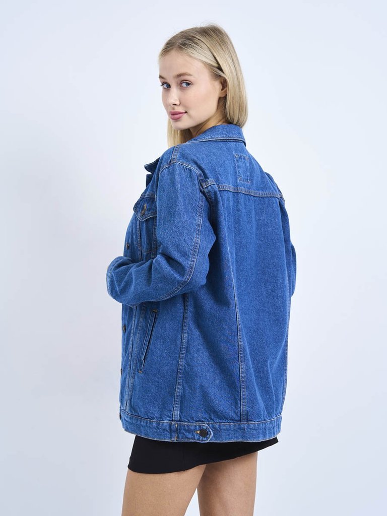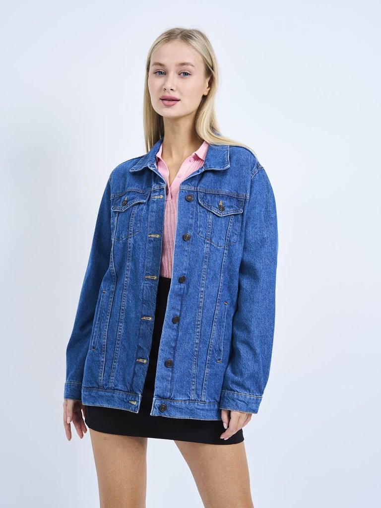 Цвет: стирка темная Состав: 100%Хлопок Материал: Blue denim VN5868 Вес материала: 11.7 ID: 205018 Описание Классическая женская джинсовая куртка свободного покроя. Прямой силуэт, пройма и рукава обесп... Показать описаниеечивают комфорт и не сковывают движения; по низу рукавов манжеты, застегивающиеся на пуговицу; небольшой воротник; на груди карманы с клапаном, также застегивающимся на пуговицу; функциональные боковые прорезные карманы "в листочку"; на поясе по бокам куртки хлястик и пуговица. Выполнена из неэластичной традиционной плотной ткани denim. Классическая темная стирка.