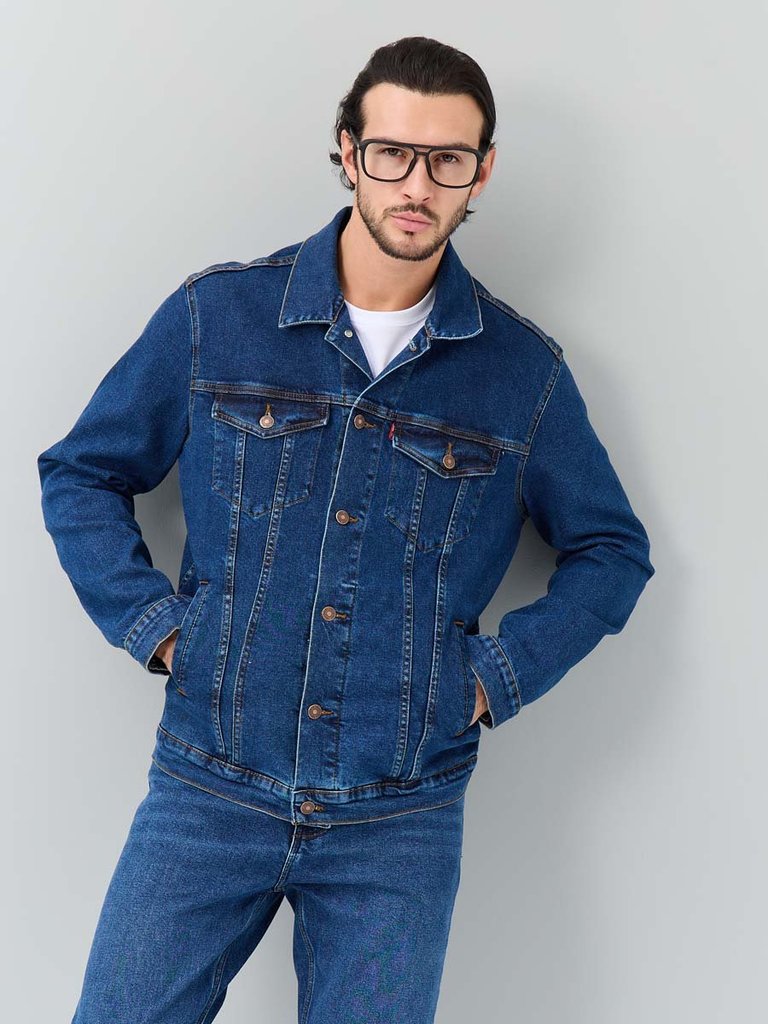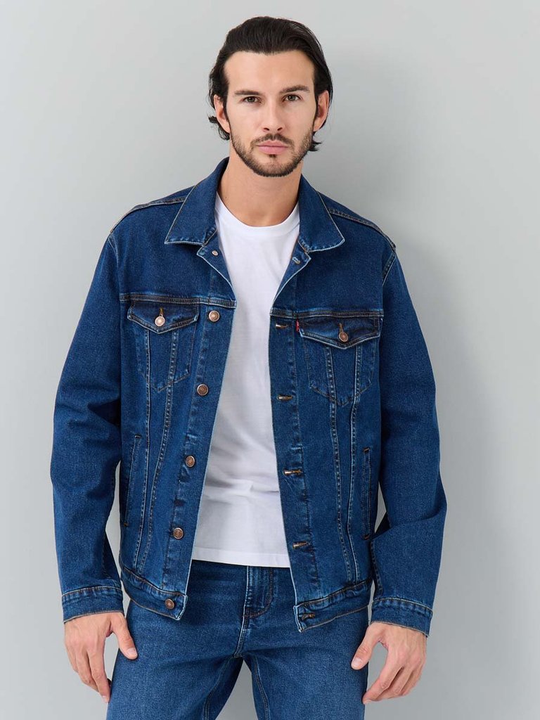 Цвет: стирка темная Состав: 99%Хлопок, 1%Эластан Материал: Blue denim 007 str. Вес материала: 12.1 ID: 248001 Описание Классическая универсальная джинсовая куртка. Прямой силуэт, пройма и рукава обесп... Показать описаниеечивают комфорт и не сковывают движения, по низу рукавов манжеты, застегивающиеся на пуговицу; небольшой воротник; на груди карманы с клапаном, также застегивающимся на пуговицу; функциональные боковые прорезные карманы "в листочку"; на поясе по бокам куртки хлястик и две пуговицы, которые позволяют регулировать длину обхвата по поясу. Выполнена из слабоэластичной плотной ткани denim. Классическая темная стирка с потертостями спереди и сзади, а также по швам.