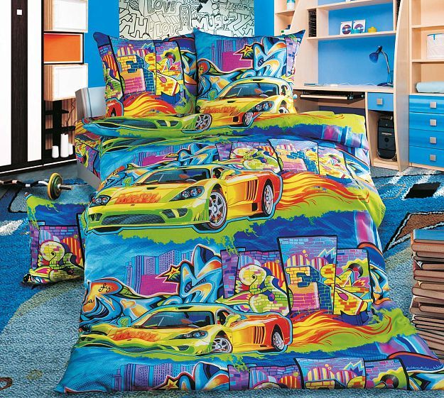 Материал: Перкаль Состав: 100 % хлопок Размер пододеяльника: 215х143 (1 шт) (Прорезь ) Размер наволочек: 70х70 (2 шт) (клапан ) Размер простыни: 214х145 (1 шт) (без резинки ) Размер одеяла: 205х140 Тк... Показать описаниеань: Перкаль Ширина ткани: 150 см Плотность ткани: 110 г/м2 Состав ткани: 100 % хлопок Упаковка: Пенал ПВХ Комплектация (что входит и в каком количестве): 1 пододеяльник, 1 простыня, 2 наволочки Цвет: синий, желтый Тематика: Мальчики (4-8 лет) Рисунок: Граффити, Машины, автомобили, скорость Стиль: детский Сезон: Всесезонное Торговая марка: Бамбино Бренд производителя: Текс-Дизайн Производство изделия (страна): Россия Вес брутто в индивидуальной упаковке: 1,40 кг Размер групповой упаковки: 34х37х27 см Вес брутто в групповой упаковке: 8,9 кг Количество в групповой упаковке: 5 шт Комплектация товара и расположение рисунка могут отличаться от представленной фотографии. Цвет ткани может незначительно отличаться от фото. Молодежный постельный комплект, стильный и яркий, сочетает в своем решении все цвета радуги. Основным является тон вечернего неба  сине-голубой, на фоне которого еще интереснее и заманчивее играют всеми возможными оттенками рисунки и надписи, создающие колорит современного города.Подробное описание на сайте.
