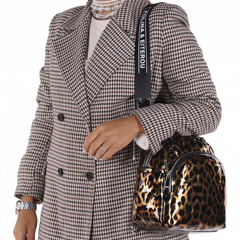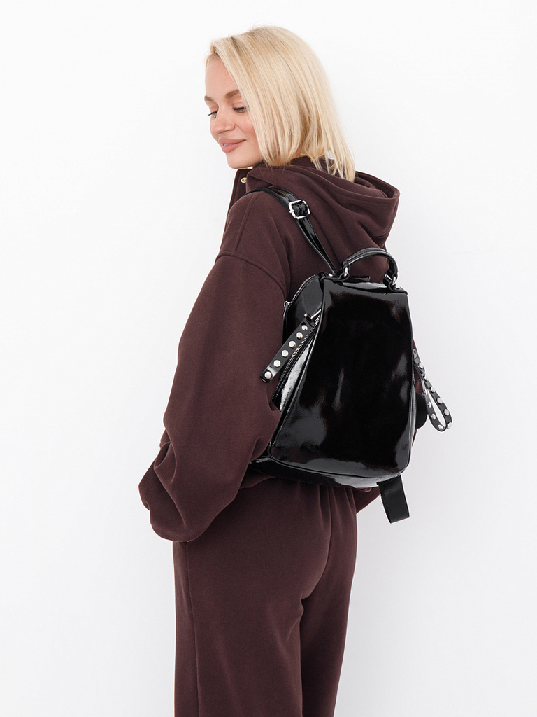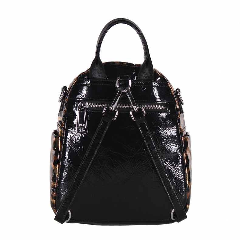 Артикул: 18336-2 black. Ширина (см): 10. Длина (см): 22. Высота (см): 25. Вес (г): 650. Бренд: Polina&Eiterou. Материал: Натуральная кожа. Рюкзак-трансформер, выполнен из натуральной лаковой кожи. Дек ... Показать описаниеорирован принтом. Дополнен серебристой фурнитурой. Данная модель закрывается на молнию. Каркас полужесткий. Носится как рюкзак или как сумка. В комплекте имеются съемные рамени с регулировкой длины и ремень-стропа. А так же встроенная короткая ручка. Внутри: на боковых частях карман открытый и на молнии. Снаружи: основной отдел на молнии. На передней части карман на молнии. По бокам два открытых кармана. НА задней части карман на молнии. Подробное описание: https://www.sumka-style.ru/catalog/zhenskie/sumki/ryukzaki/18336-2-polina-eiterou/offer/20279/