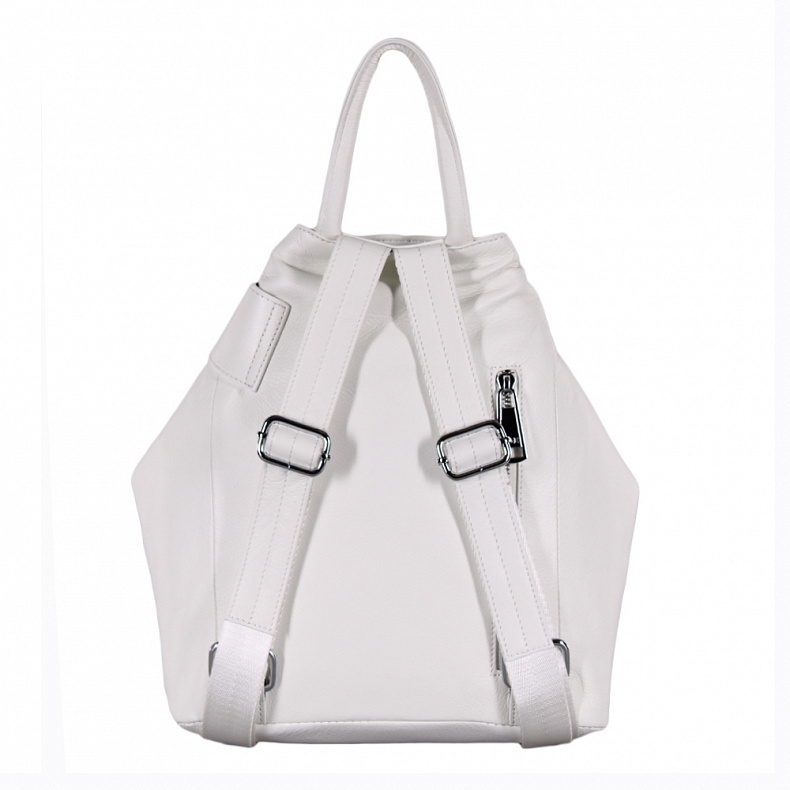 Артикул: 1729Y white. Ширина (см): 10. Длина (см): 26. Высота (см): 27. Вес (г): 900. Бренд: Polina&Eiterou. Материал: Натуральная кожа. Удобный рюкзак, выполнен из натуральной кожи. Снаружи под клапа ... Показать описаниеном два отдела и карман-перегородка на молнии. На задней части карман на молнии. Внутри подкладочная ткань, на боковых частях два открытых кармана и карман на молнии. Каркас полужесткий. Фурнитура блестящее серебро. Ножки есть. Подробное описание: https://www.sumka-style.ru/catalog/zhenskie/sumki/ryukzaki/1729y-polina-eiterou-/offer/20070/