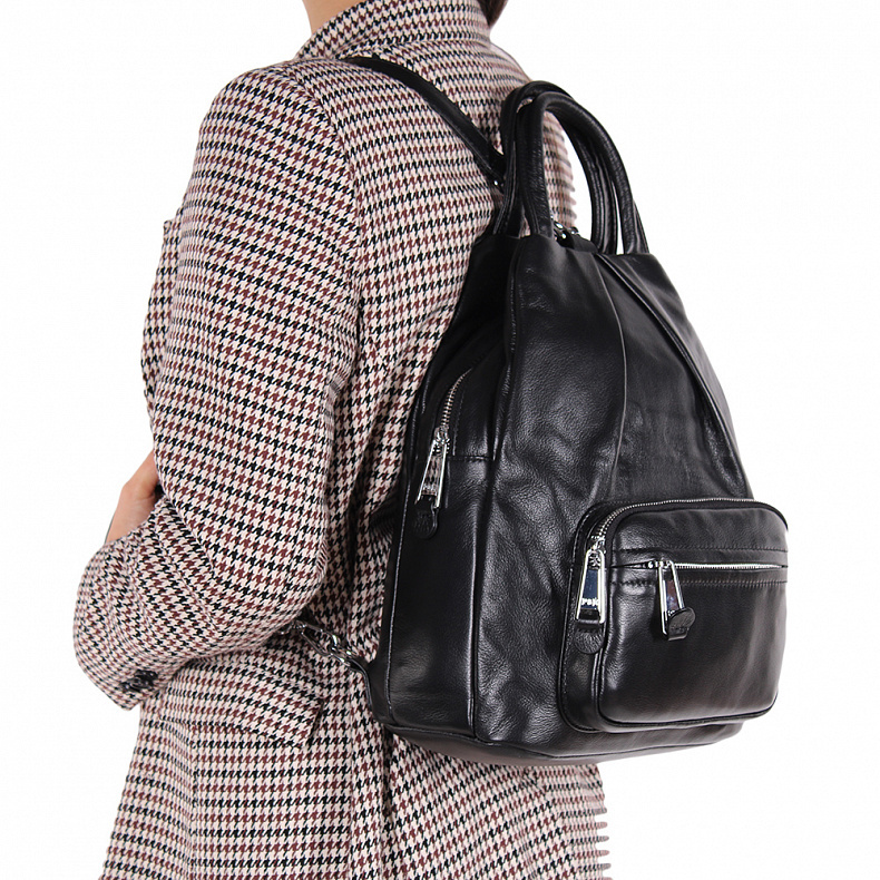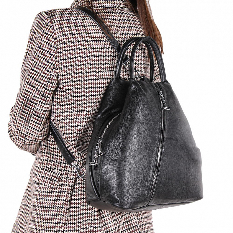 Артикул: 18143 black. Ширина (см): 12. Длина (см): 27. Высота (см): 30. Вес (г): 850. Бренд: Polina&Eiterou. Материал: Натуральная кожа. Рюкзак каплевидной формы, выполнен из натуральной кожи. &n ... Показать описаниеbsp;Дополнен серебристой фурнитурой. Данная модель закрывается на молнию, носится на плече или в руке. В комплекте предусмотрены ремни съемные с регулировкой длины и встроенные ручки. Каркас полужесткий. Внутри: подкладочная ткань, на боковых стенках есть карман на молнии и открытый. Снаружи: основной отдел на молнии. На задней части карман на молнии и передней два кармана на молниях. Подробное описание: https://www.sumka-style.ru/catalog/zhenskie/sumki/ryukzaki/18143-polina-eiterou-/offer/20574/