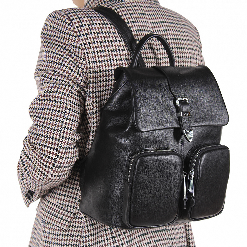 Артикул: 18297-2 black. Ширина (см): 12. Длина (см): 26. Высота (см): 33. Вес (г): 900. Бренд: Polina&Eiterou. Материал: Натуральная кожа. Классическая модель рюкзака, выполнена из натуральной кожи. Д ... Показать описаниеополнен серебристой фурнитурой. Данная модель закрывается на молнию. Каркас полужесткий. Носится рюкзаком и сумкой. Внутри: подкладочная ткань, на боковых частях два кармана на молниях и два открытых. Снаружи: отдел под клапаном на молнии. На задней части карман на молнии. На передней части два кармана под клапанами. Подробное описание: https://www.sumka-style.ru/catalog/zhenskie/sumki/ryukzaki/18297-2-polina-eiterou/offer/22160/