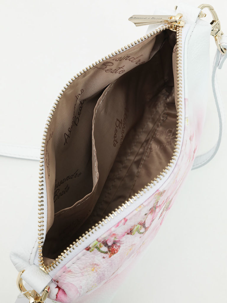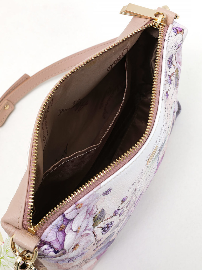 Маленькая сумка кросс-боди от Alessandro Beato из натуральной кожи светло-розового цвета с цветочным принтом