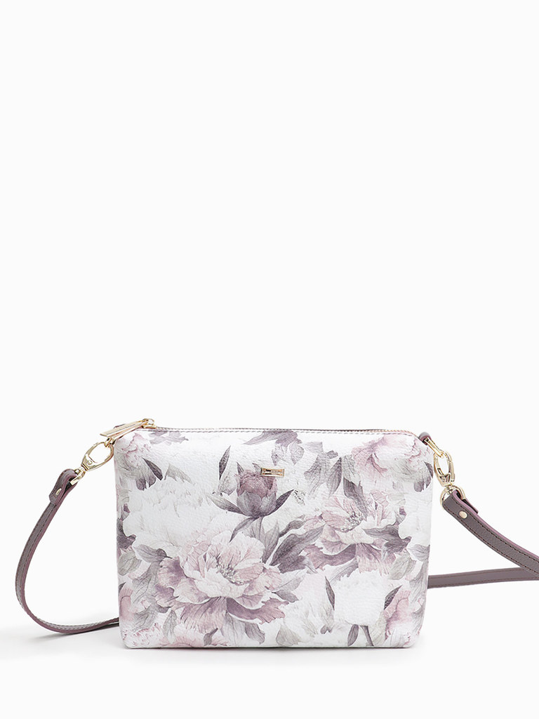 Маленькая сумка кросс-боди от Alessandro Beato из натуральной кожи сиреневого оттенка с цветочным принтом