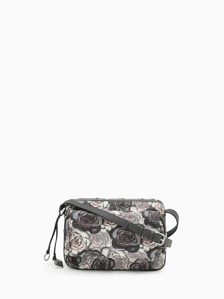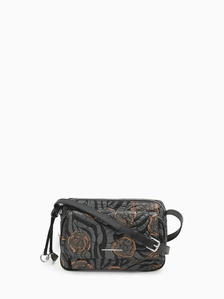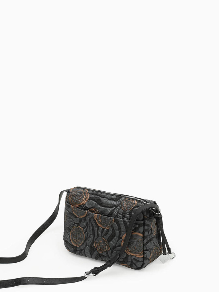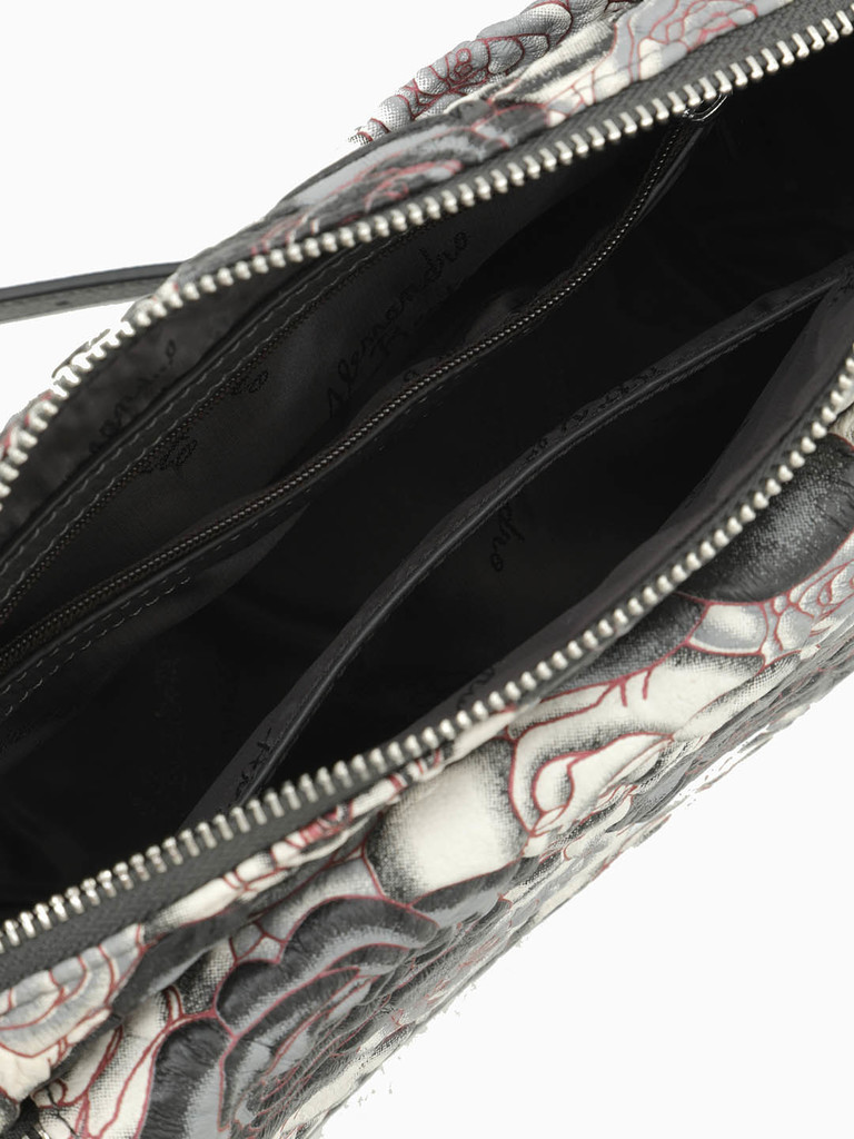 Кросс-боди с карманом на молнии и клапаном спереди от Alessandro Beato из кожи букле черного-серых тонов