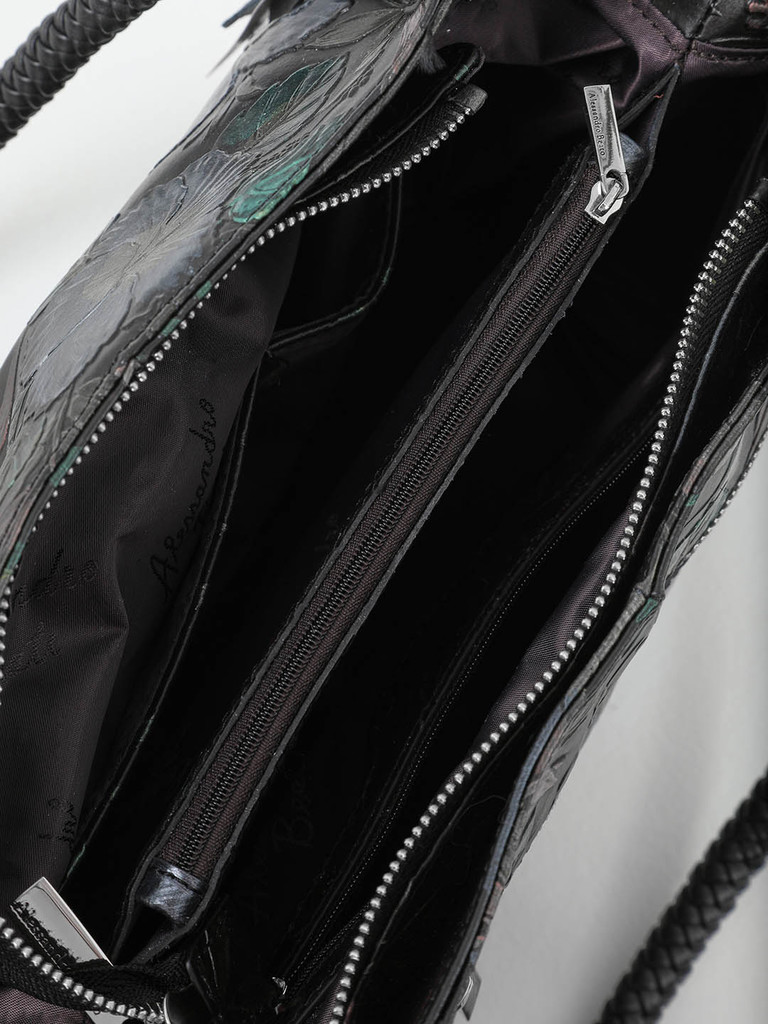 Сумка с ручкой с серебристыми люверсами и цветочным тиснением от Alessandro Beato чёрного цвета