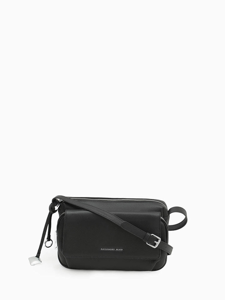Кросс-боди с карманом на молнии и клапаном спереди от Alessandro Beato из кожи черного цвета