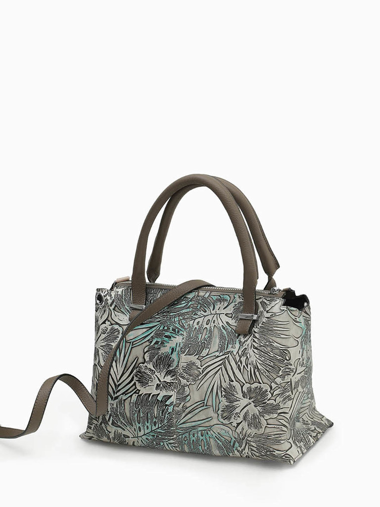 Тоут с цветочным тиснением и металлическими буквами Alessandro Beato в цвете тауп