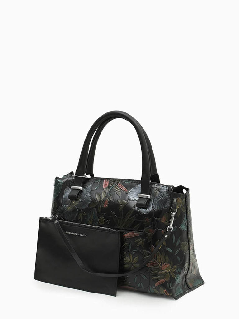 Тоут с цветочным тиснением и металлическими буквами Alessandro Beato в черном цвете