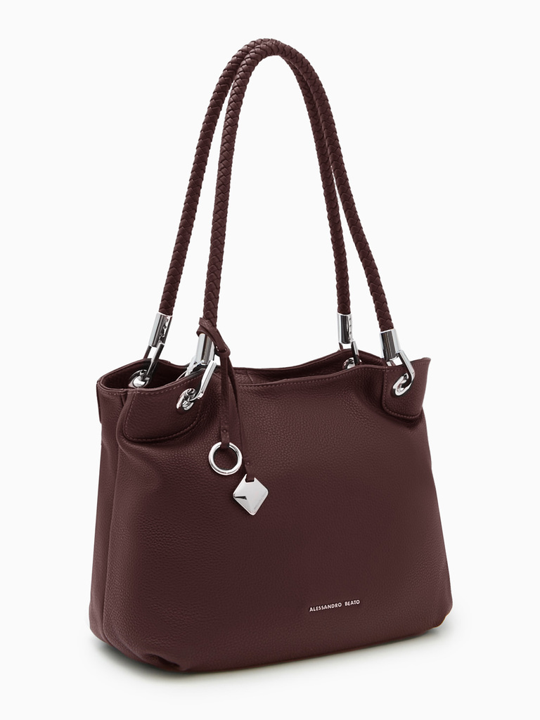 Шоппер с длинными плетёными ручками от Alessandro Beato из натуральной кожи бордового цвета