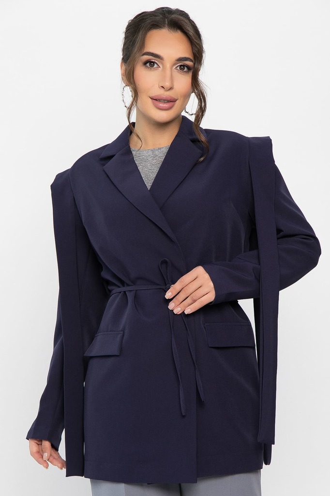 Состав : 95% полиэстер, 5% эластан Материал : костюмный Цвет : темно-синий Принт : отсутствует Силуэт : свободный Карманы : отсутствуют Подкладка : отсутствует Вид застежки : завязки Декоративные элем... Показать описаниеенты : ленты через плечо сзади и по переду Длина : 44 - 77 см,, 46 - 77 см,, 48 - 77 см,, 50 - 78 см,, 52 - 78 см Обхват груди : 44 - 96, 46 - 100, 48 - 104, 50 - 108, 52 - 112 Обхват бёдер : 44 - 96, 46 - 100, 48 - 104, 50 - 108, 52 - 112 Обхват талии : 44 - 92, 46 - 96, 48 - 100, 50 - 104, 52 - 108 Дополнительные параметры размеров : 44 - длина рукава Отснято с брюками Б14103-34М [ https://ltcollection.ru/catalog/bryuki/196510/ ] С этим эффектным и модным жакетом вы сможете создать неповторимый образ! Обратите внимание на оригинальные детали — декоративные завязки на плечах, которые придают вашему наряду особую изюминку. Также в модели предусмотрены подплечники. Этот жакет прекрасно дополнит любой образ и станет идеальным выбором для официальных мероприятий, свиданий, вечеринок или повседневной носки. Он позволит вам раскрыть свой стиль и экспериментировать с различными аксессуарами и элементами гардероба. Внимание! Рекомендуем ориентироваться на размерную сетку и выбирать свой привычный размер, согласно размерной таблице. *Допуск отклонения длины при массовом производстве 1-3 см является нормой. Уход за изделием: Ручная стирка или стирка в машине при температуре до 30 °C, деликатный режим. Не использовать отбеливатели. Разрешена глажка при температуре до 110 °C. При глажке использовать специальную насадку на подошве утюга, гладить с паром. Не замачивать и не выжимать. Стирать изделие наизнанку, отдельно от других вещей.