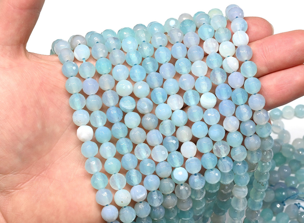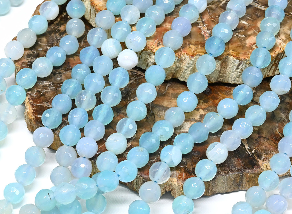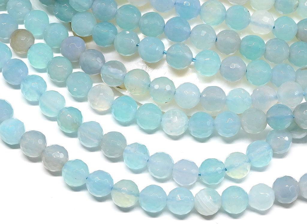 Агат тонированный бусины в форме шарика с гранями 8мм цв.голубой, 38см, 48 бусин.Вопросы по товару