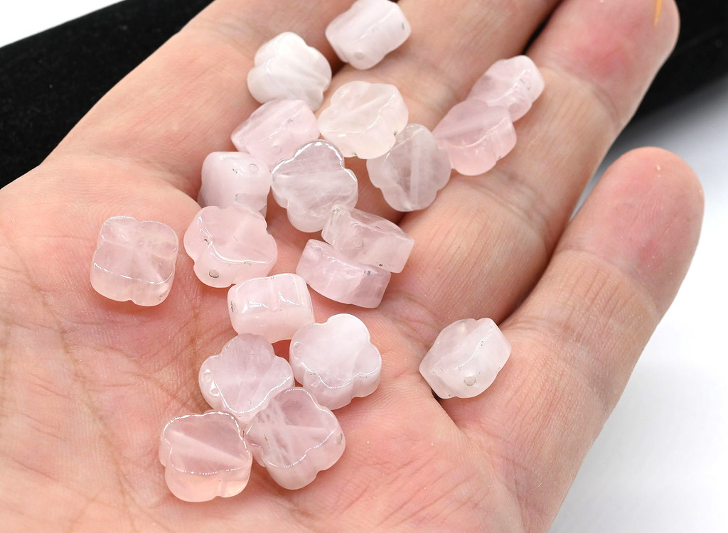 Материал: Розовый кварц Натуральность: Натуральный камень Месторождение: Бразилия •Бусина в форме клевера из натурального розового кварца идеально подойдет для разнообразных проектов в технике рукодел... Показать описаниеия, сочетает в себе красоту камня и удачную форму. •Клевер - символ удачи, особенно четырехлистный. •Бусины подходят для создания серег, вставок для браслетов, ожерелий, бус, чокеров, кулонов. •Допустимо наличие микротрещин и раковин, которые являются естественными характеристиками камня и подчеркивают его натуральное происхождение. •Цена за 1 шт.