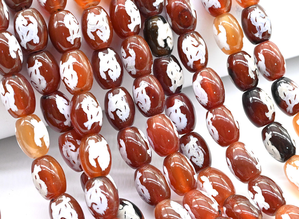 Материал: Агат Тибетский Натуральность: Натуральный камень Месторождение: Неизвестно •Бусины изготовлены из натурального агата с нанесением устойчивого орнамента. •Рисунок выполнен вручную, поэтому не... Показать описаниемного отличается на каждой бусине. •Оттенок бусин может отличаться, на камне могут присутствовать естественные для агата вкрапления и прожилки. •Цена указана за 1 бусину. •Размер бусин может незначительно отличаться от указанного в наименовании ± 1мм. •Бусина Дзи Лошадь (Конь удачи, Зубы Лошади, Волна удачи) - символизирует жизненные силы, острый ум, выносливость, красоту, элегантность и свободу священного в Тибете животного — лошади. Тибетское слово «Тассо», обозначающее эту Дзи, в переводе означает «Лошадь Ветра». Усиливает внутреннюю энергию, трудоспособность помогает выйти из застоя и ускоряет исполнение желаний. Даёт мощный импульс для роста — в карьере, бизнесе, здоровье и жизни в целом. Помогает своему владельцу оставаться свободным от неприятностей, избегая и преодолевая опасности на жизненном пути. Лошадь поможет хозяину не попасть в беду, избежать ловушек и опасностей, успеть воспользоваться всеми благоприятными возможностями до того, как они могут исчезнуть. Она «перепрыгнет» все препятствия, которые могут оказаться на пути к цели. Некоторые источники также упоминают свойство «Лошади» достигать намеченной цели очень быстро, буквально — «за один прыжок».