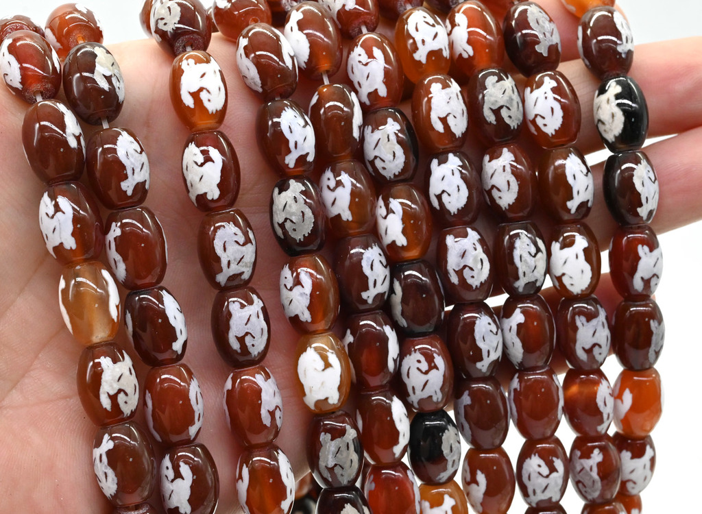 Материал: Агат Тибетский Натуральность: Натуральный камень Месторождение: Неизвестно •Бусины изготовлены из натурального агата с нанесением устойчивого орнамента. •Рисунок выполнен вручную, поэтому не... Показать описаниемного отличается на каждой бусине. •На камне могут присутствовать естественные для агата вкрапления и прожилки. •Цена указана за 1 нитку. •Количество бусин 25 ± 1шт. •Размер бусин может незначительно отличаться от указанного в наименовании ± 2мм. •Бусина "Конь тассо" - символизирует жизненные силы, выносливость, красоту, элегантность и свободу священного в Тибете животного — лошади. Тибетское слово «Тассо» в переводе означает «конь ветра». Качества этого красивого и умного животного, помогают как в материальном, так и в духовном мире.