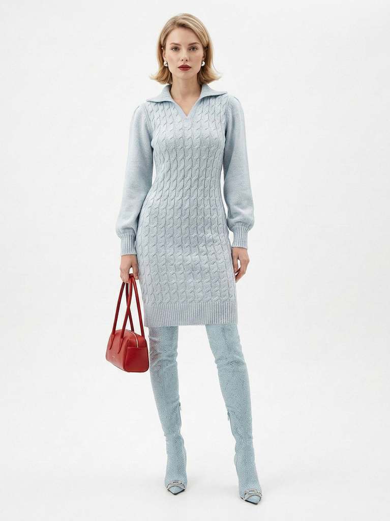 Состав: 80% акрил, 10% полиамид, 10% элит. Длина по спинке: 91 см. Цвет: светло-голубой. Вязаное платье прямого покроя полуприлегающего силуэта длиной до середины бедра (про росте 170 и Ог и Об соотве ... Показать описаниетствующих по ГОСТ 17522-72). Рукав втачной прямого покроя стандартной длины. Линия плеча немного спущенная. Вырез горловины круглый с имитацией "поло" без застёжки и широким отложным воротником. Подробное описание: https://happychoice.ru/catalog/platya/2408_plate_zhenskoe_tsvet_sv_goluboy/