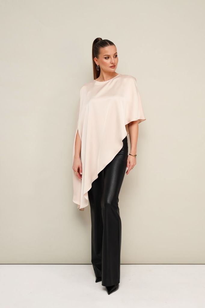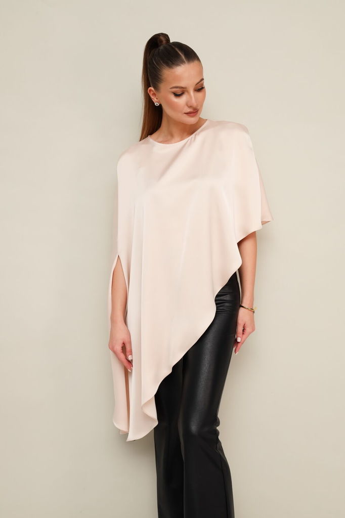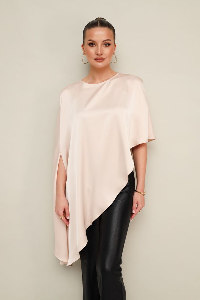 Состав: ПЭ-100%; Размеры: 42/44, 46/48. Блузка с ассиметричным кроем, выполнен из струящейся ткани с благородным матовым блеском. Элемент одежды, который создает множество вариантов стилизации образов... Показать описание.