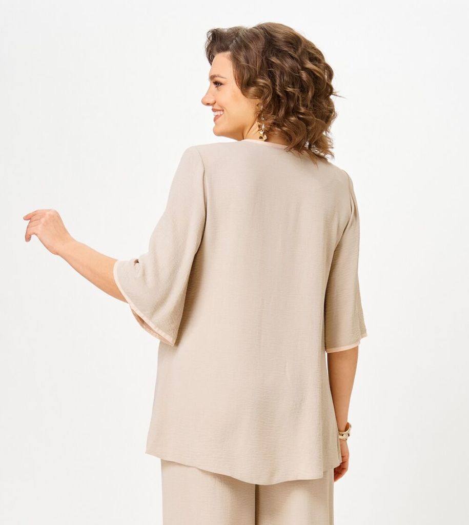 Состав: Вискоза-60%; ПЭ-35%; Эластан-5%; О товаре Отснято с брюками Б14508-8М Выразите свою уникальность и добавьте изысканности любому наряду с этой бежевой шелковой блузкой! Рукава длиной 3/4, цельн... Показать описаниеокроеные и завершающиеся манжетом с пуговицей и патой, придают модели утонченный вид. Воротник-стойка плавно переходит в широкий распашной воротник апаш, создавая современный и элегантный силуэт. Спина немного длиннее переда. По центру передней части проходит планка, а внизу — сборка на шнурке, придающая интересный объем. Эта блузка станет идеальным выбором как для деловых встреч, так и для повседневного образа, добавляя вашему стилю нотку роскоши и утонченности. Уход Ручная стирка или стирка в машине при температуре до 30 °C, деликатный режим. Не использовать отбеливатели. Разрешена глажка при температуре до 110 °C. При глажке использовать специальную насадку на подошве утюга, гладить с паром. Не замачивать и не выжимать. Стирать изделие наизнанку, отдельно от других вещей.