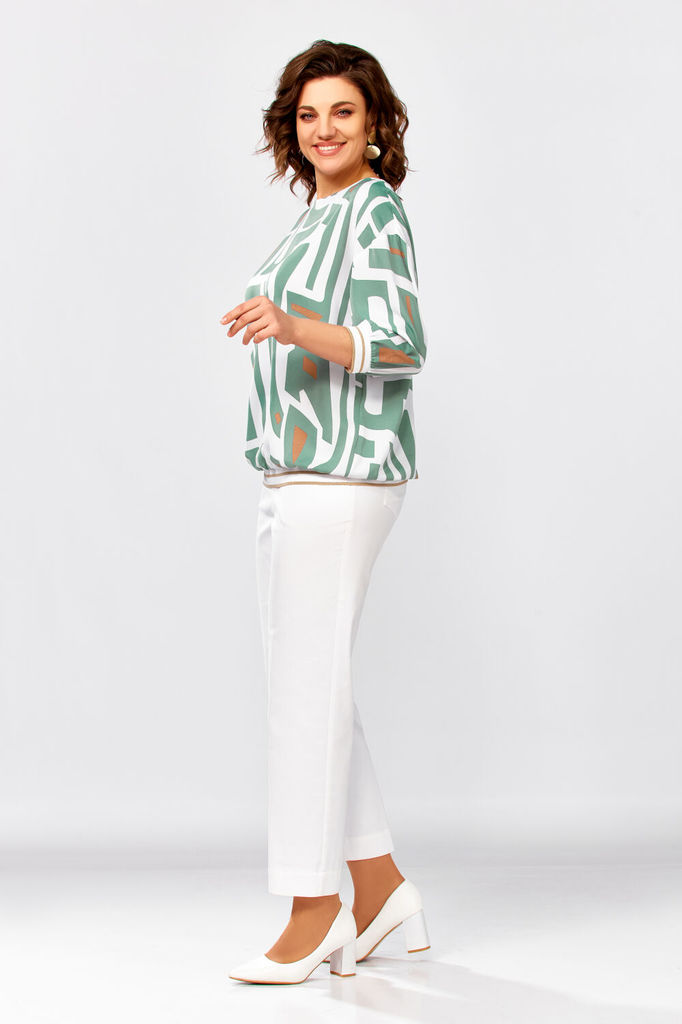 Состав: Бамбук-95%; Эластан-5%; О товаре Отснято с брюками Б14508-8М Создайте эффектный и современный образ с этой изысканной блузкой. Ее особенность заключается в уникальной комбинации элементов деко... Показать описаниера и удобной посадке. Стильная блузка со спущенным плечом и рукавом длиной 3/4. Боковые разрезы обеспечивают удобство движения и делают образ воздушным и динамичным. Белая отделка низа изделия, края рукавов и горловины придает изделию свежесть и оригинальность. Украшена выразительной печатью и стразами, что делает образ более ярким и привлекательным. Уход Ручная стирка или стирка в машине при температуре до 30 °C, деликатный режим. Не использовать отбеливатели. Разрешена глажка при температуре до 110 °C. При глажке использовать специальную насадку на подошве утюга, гладить с паром. Не замачивать и не выжимать. Стирать изделие наизнанку, отдельно от других вещей.