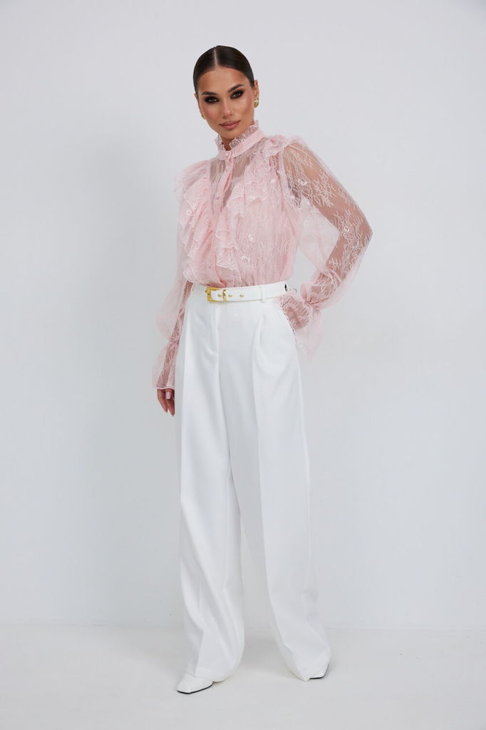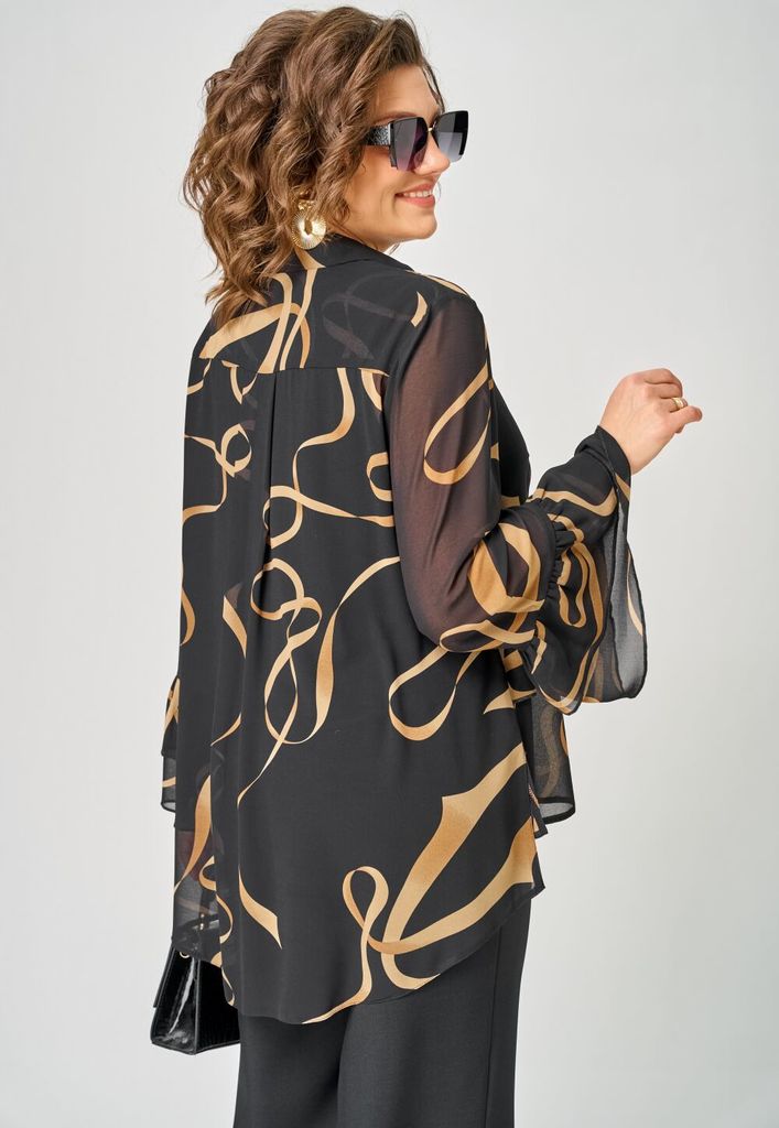 Состав: ПЭ-100%; Блузка женская свободного силуэта, из легчайшего кружева. По переду подрез с воланами. Застежка на планку с декоративными пуговицами. Воротник - стойка с небольшой рюшей. Рукав длинны... Показать описанией объемный со сборкой в верхней части, в нижней части рукав собран на эластичную тесьму и образует волан. В комплект с блузкой предлагается топ на регулируемых бретелях. Длина блузки 60 см. Длина топа по спинке - 34 см. Длина рукава с учетом напуска - 69 см. Измерения по готовому изделию: 44 р-р: ОГ - 112 см., ОТ - 108 см., ОБ - 114 см. ; Топ ОГ - 92 см., ОБ - 92 см., ОТ - 92 см. 46 р-р: ОГ - 116 см., ОТ - 112 см., ОБ - 118 см.; Топ ОГ - 96 см., ОБ - 96 см., ОТ - 96 см. 48 р-р: ОГ - 120 см., ОТ - 116 см., ОБ - 122 см.; Топ ОГ - 100 см., ОБ - 100 см., ОТ - 100 см. 50 р-р: ОГ - 124 см., ОТ - 120 см., ОБ - 126 см.; Топ ОГ - 104 см., ОБ - 104 см., ОТ - 104 см. 52 р-р: ОГ - 128 см., ОТ - 124 см., ОБ - 130 см.; Топ ОГ - 108 см., ОБ - 108 см., ОТ - 108 см.