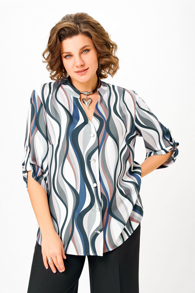 Состав: Вискоза-78%; ПЭ-20%; Эластан-2%; Блузка из мягкой вискозной ткани, свободного силуэта с центральной застёжкой на петли и декоративные пуговицы. Перед с нагрудными вытачками. Спинка с отрезной ... Показать описаниекокеткой и бантовой складкой. Горловина V-образной формы с притачной стойкой. Рукав втачной, одношовный, прямой длиной ? с патой и пуговицей, которыми регулируется длина. Низ полочки и спинки закруглённой формы с разрезами по боковым швам. Длина по центру спинки в размерах 52.54,56 – 71 (+/-1) см. в размерах 58.60,62 – 74 (+/-1) см. Длина рукава – 44 см.