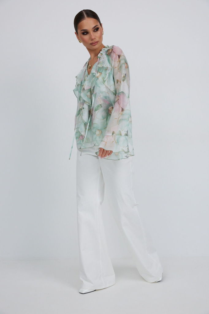 Состав: Вискоза-30%; ПЭ-65%; Эластан-5%; О товаре Отснято с брюками Б15036-5М Блузка с воланами из органзы — это настоящая находка для вашего гардероба! Она станет ярким акцентом как на торжественных ... Показать описаниемероприятиях, так и для повседневных прогулок. Воланы придают образу лёгкость и романтичность. С этой блузкой вы сможете создать стильный и запоминающийся образ! Уход Ручная стирка или стирка в машине при температуре до 30 °C, деликатный режим. Не использовать отбеливатели. Разрешена глажка при температуре до 110 °C. При глажке использовать специальную насадку на подошве утюга, гладить с паром. Не замачивать и не выжимать. Стирать изделие наизнанку, отдельно от других вещей.