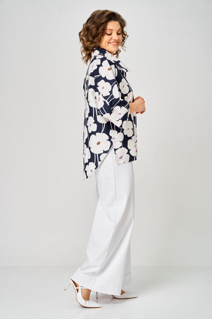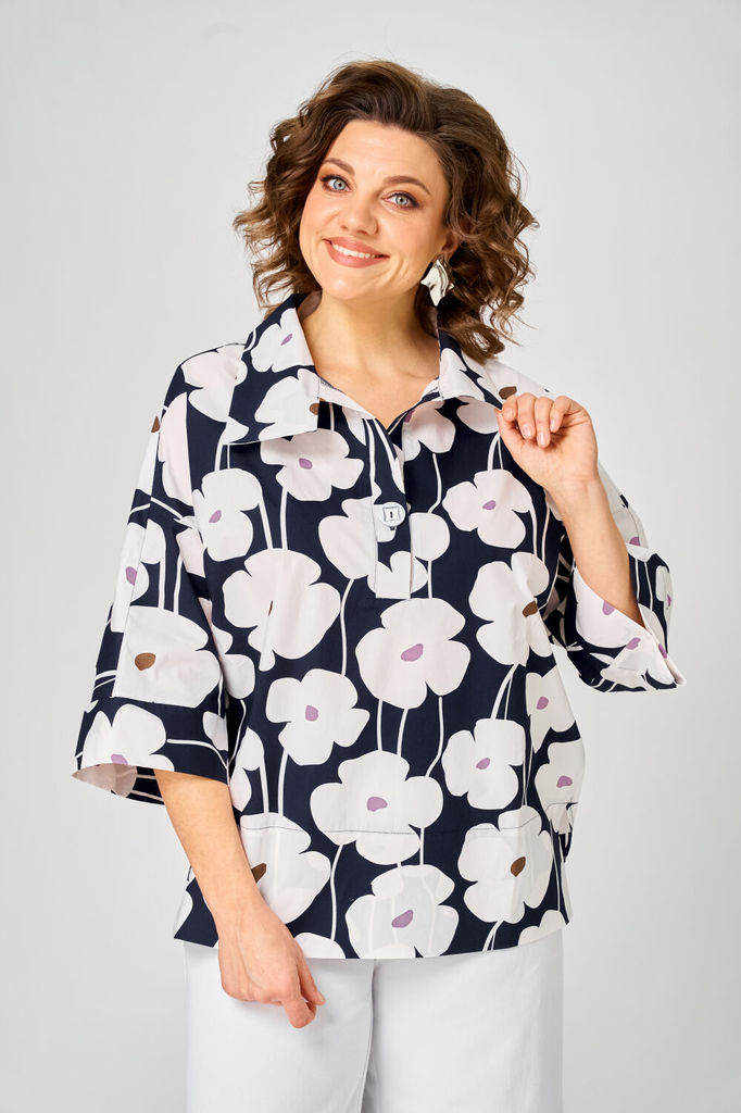 Состав: Хлопок-100%; Блузка с авторским цветочным принтом Блузка для тех, кто хочет ловить комплименты без лишней суеты. Хлопковая блузочная ткань держит вид и пропускает воздух, а практичный принт ра... Показать описаниеботает как умный камуфляж: мелкие нюансы дня и лёгкая замятость на нём почти незаметны. Главная фишка — разлетающаяся спинка: полочки сзади раскрываются в движении, добавляя воздуха и свободы. Асимметричный воротник и аккуратные манжеты делают образ современным и небанальным. ? Почему стоит взять: • Дышащий хлопок + фактура: опрятно весь день, уход простой • Практичная расцветка: «жизнь» на ней не видна • Разлетающаяся спинка — эффект лёгкости и стройности • Асимметричный воротник и манжеты — акцент без перегруза • Легко сочетать: брюки/джинсы/юбка, под жакет или соло Не сомневайтесь — сохраните, чтобы случайно не потерять. К ней вы точно вернётесь Длина изделия по спинке 74 (+/- 1 см). Длина рукава от горловины 55 (+/- 1 см). Изделие подойдет на рост 170 см