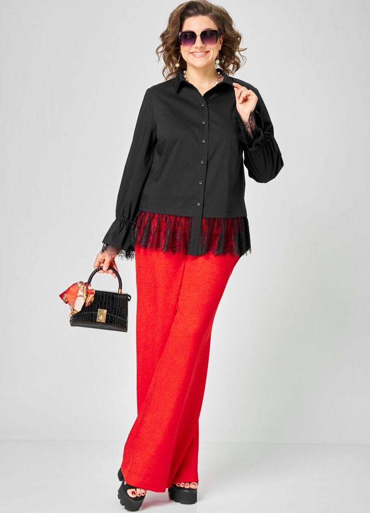 Состав: Блуза: ПЭ-100%; Топ: ПЭ-97%; Спандекс-3%; Элегантная блузка прямого кроя, выполнена из струящейся ткани с благородным матовым блеском. Горловина с рубашечным воротником на отрезной стойке, цен... Показать описаниетральная застежка на петли и пуговицы. Перед блузки выполнен с декоративным перекрутом в низжней части застежки. Рукава со спущенной линией втачивания плеча, манжеты с застежкой на петли и пуговицы. Спинка с отрезной кокеткой и бантовой складкой. Топ прямого силуэта, выполнен из изысканного французского кружева. V-образный вырез горловины обработан кружевной отделкой.
