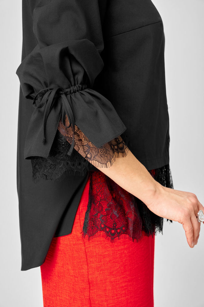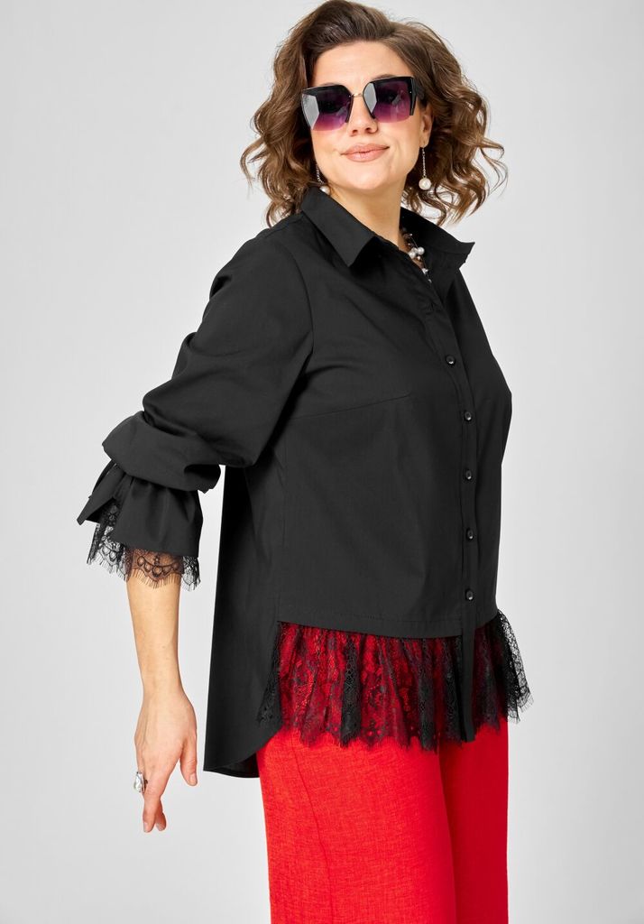 Состав: ПА-26%; Хлопок-71%; Эластан-3%; Отшивается на заказ от двух недель. Блуза красивая модная шикарная женская нарядно повседневная прямого силуэта выполнена из дорогого хлопка в сочетании с италь... Показать описаниеянским кружевом. Застежка доверху на обметанные петли и пуговицы, что делает блузу удобной в носке и воротник на стойке рубашечного типа. По полочкам нагрудные выточки, в боковых швах обработаны разрезы, что придает изделию элегантность и удобство в носке. Рукав спущенный втачной по низу декоративная манжета с кружевом. Этот элемент очень красивый и придает изделию элегантность стиль и неповторимость. По манжете рукава втянута кулиса, которая дает возможность регулировать высоту рукава засчет стягивания, что позволяет делать рукав разной длины и формы. Спинка с отрезной кокеткой и встречной складкой, что позволяет скрыть все изьяны фигуры. По низу полочки притачная деталь из красивого итальянского кружева со сборкой - тренд сезона.